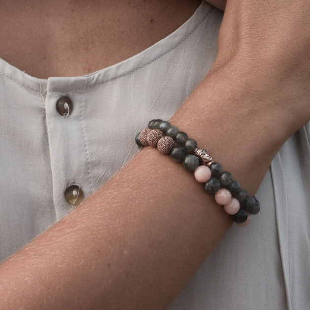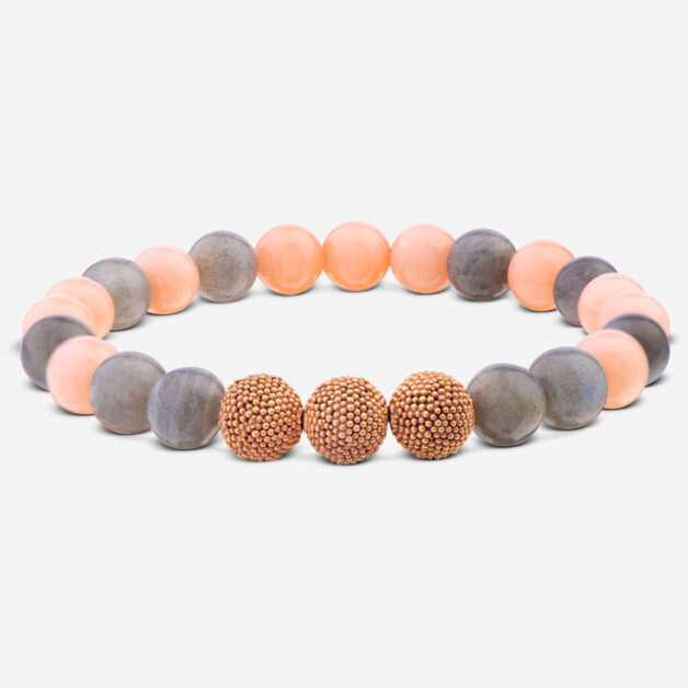 Vergoldetes Sterlingsilber mit Labradorit & rosa Jade Ø 8mm