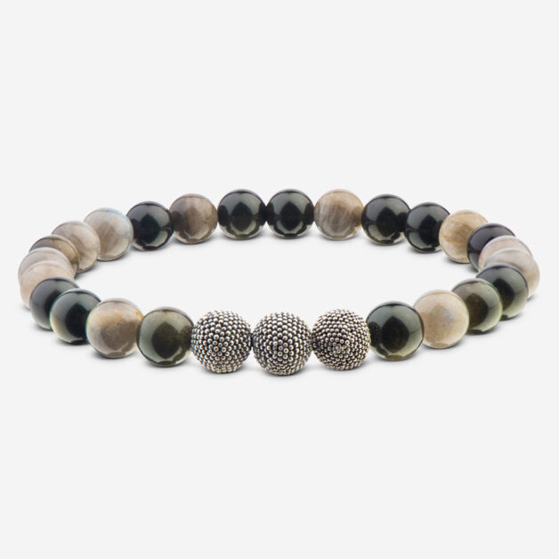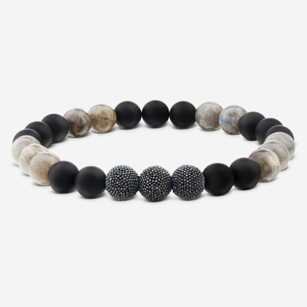 Geschwärztes Sterlingsilber mit Onyx & Labradorit - 8mm