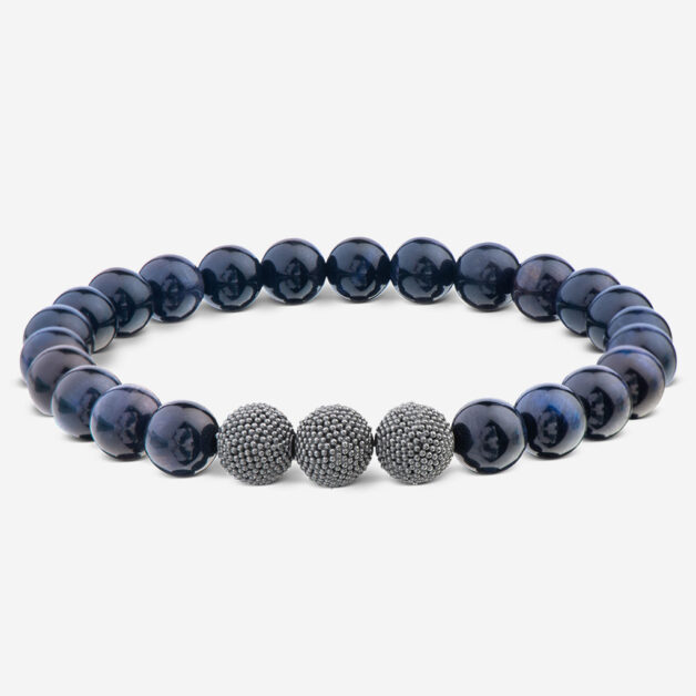 Mattiertes Sterlingsilber mit Onyx & Lava - 6mm