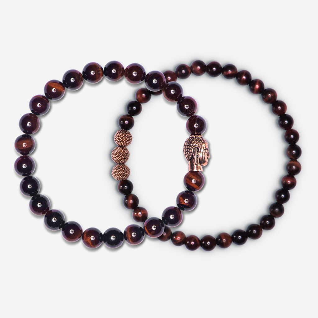 Eine perfekte Symbiose aus lehmrot-changierendem roten Tigerauge in 8 mm mit Roségold vergoldetem Buddha verleihen diesem Damenarmband schlichte Eleganz und stilvolle Klarheit. Zeitlos schön & passend zu fast jedem Outfit.