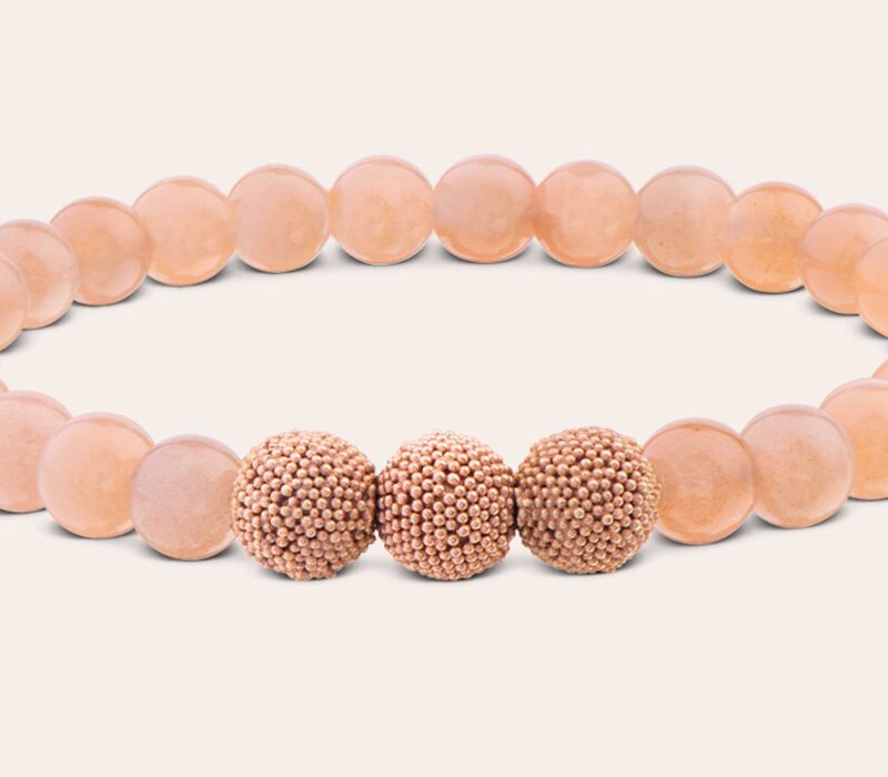 Wahre Eleganz für die Ewigkeit beweist die exklusive Symbiose aus rosa Mondstein in 6 mm an diesem Damenarmband, elegant abgerundet mit Roségold vergoldeten Silberperlen für einen edlen Blickfang an Deinem Handgelenk.