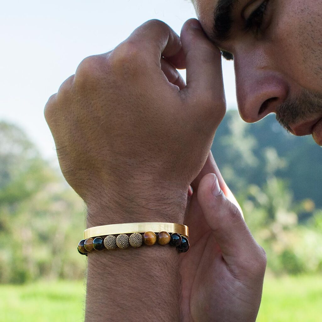 Vergoldetes Sterlingsilber mit Onyx & braunem Tigerauge - 8mm