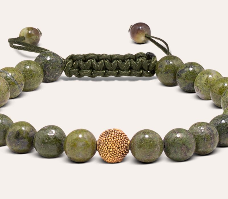 Der Markramee Verschluss ist nicht nur funktional, sondern auch ästhetisch ansprechend. Die kunstvoll geknüpften Fäden schaffen ein elegantes Muster, das dem Armband einen zusätzlichen Hauch von Eleganz verleiht. Das feine Detail des Verschlusses zeigt die Handwerkskunst unserer Schmuckhersteller, die mit viel Liebe zum Detail an jedem einzelnen Knoten arbeiten.