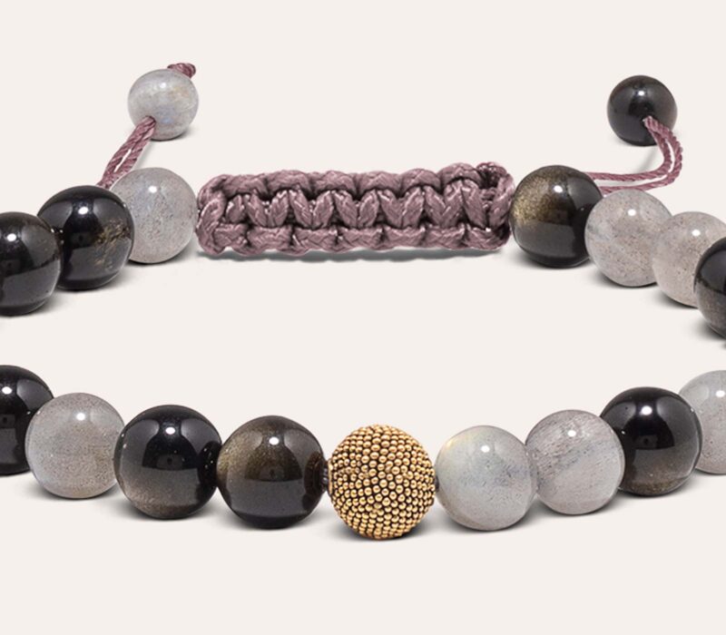 Labradorit & Goldobsidian ø 8mm mit handgefertigter Silberperle in 24kt matt vergoldet